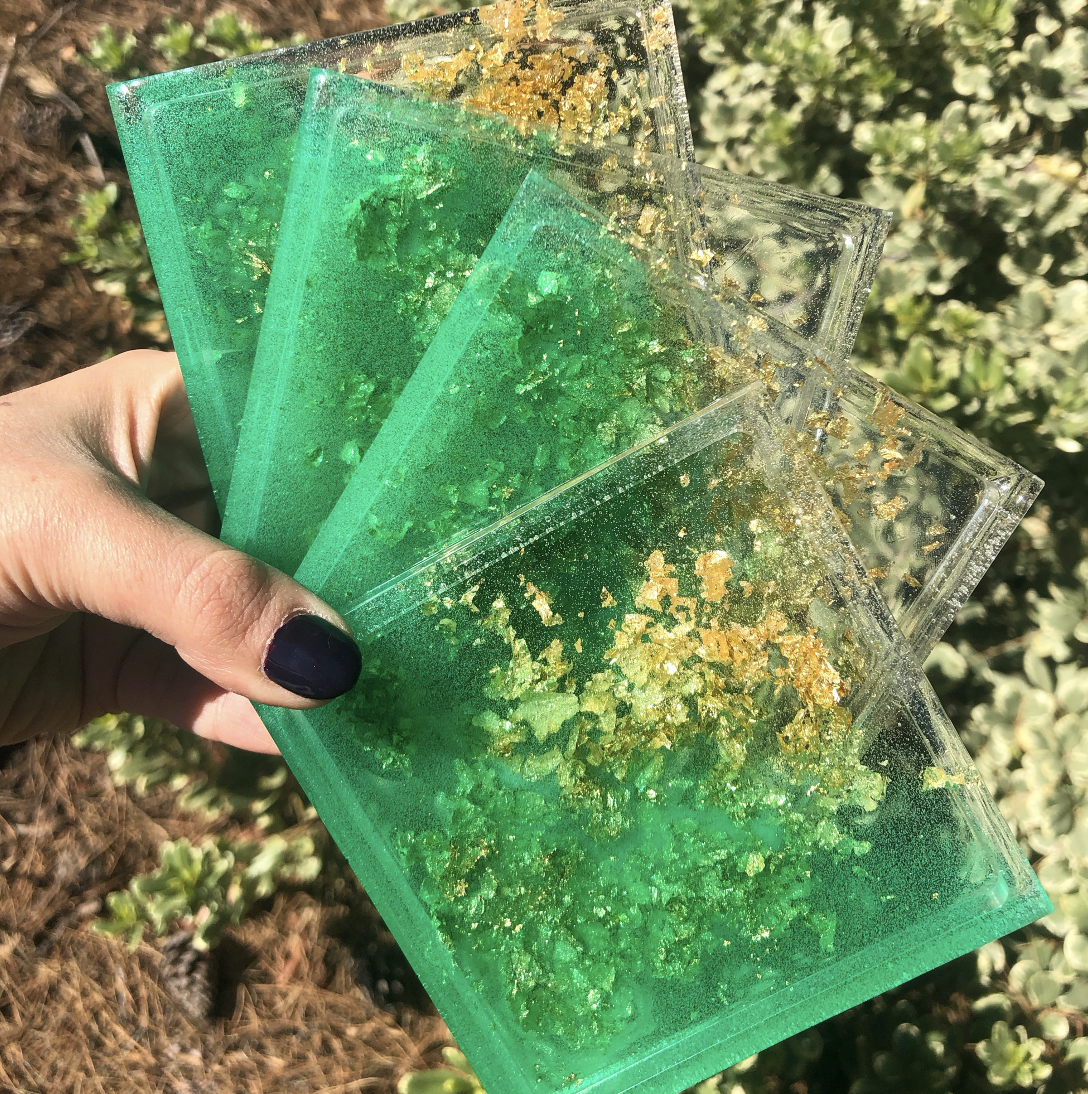 Set of 4 square custom made resin coasters. Each coaster is thoughtfully and carefully crafted in order to provide you with the quality designs you deserve!